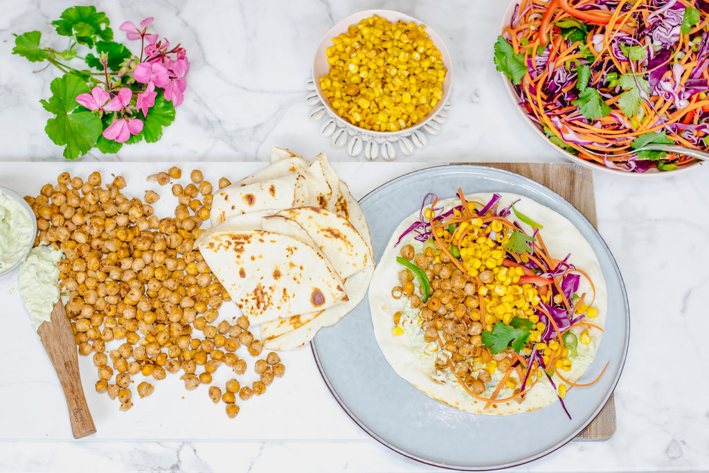 Smoky Mexican Chickpeas & Rainbow Salad on Cripsy Tortilla