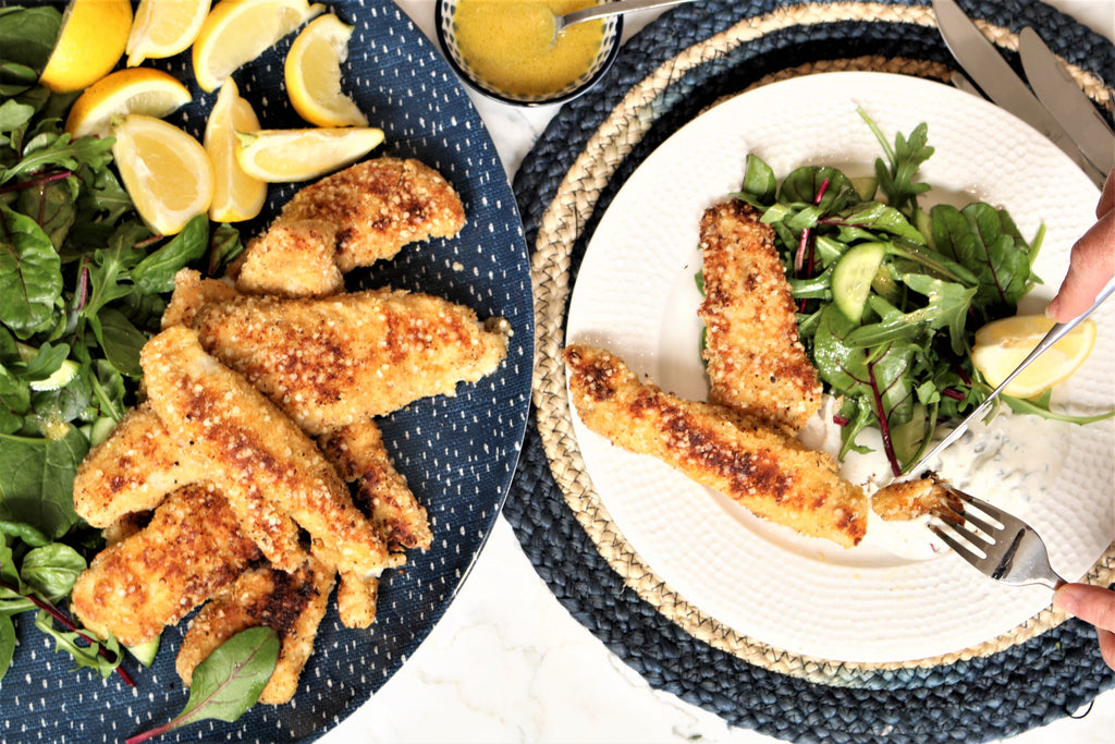 Fish Fingers with Tartare, Green Salad and Potatoes*Protein sub: Free Range Chicken